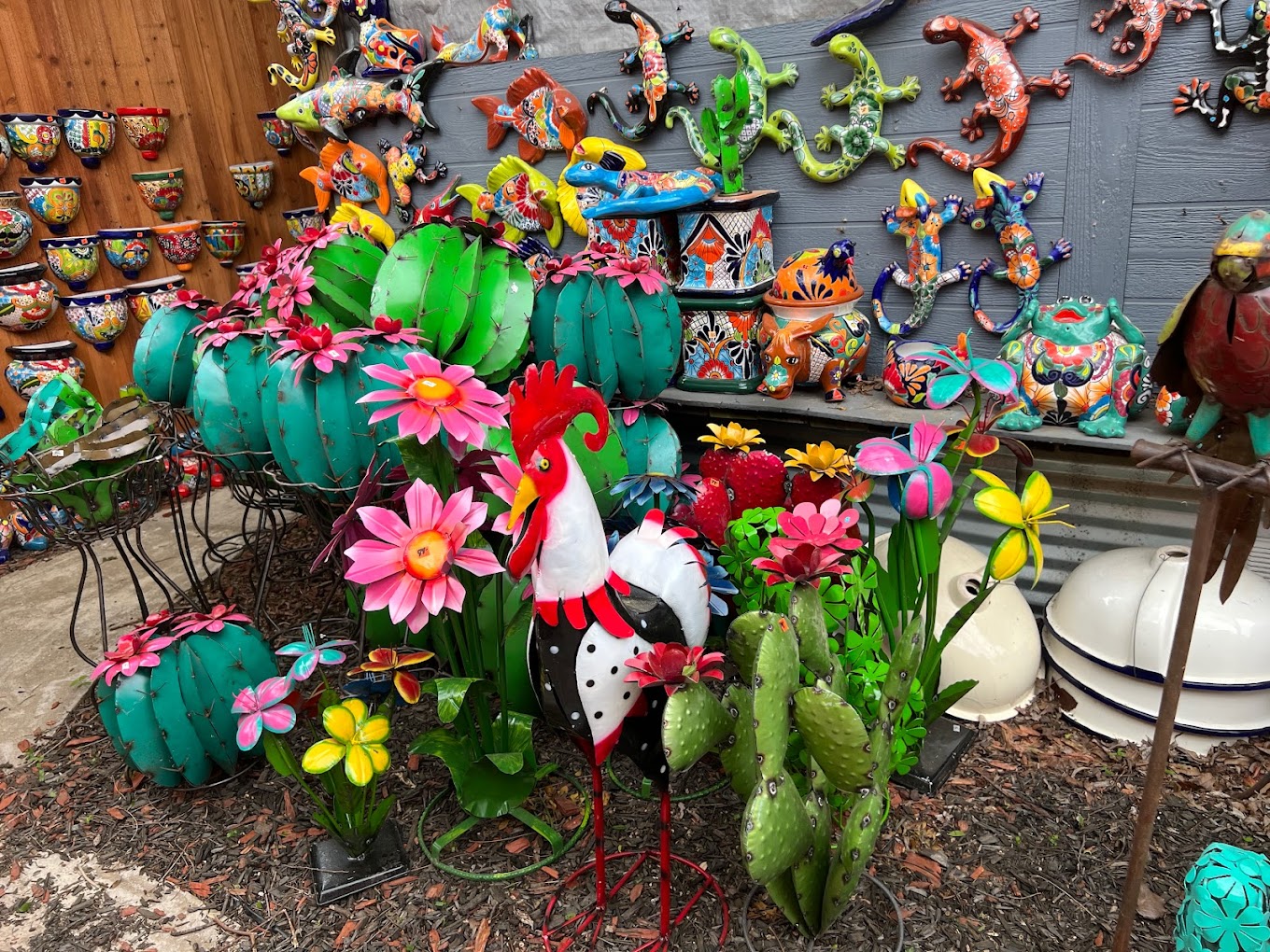 We offer a large selection of handcrafted Talavera pottery, chimineas, metal yard art, wall decor, and traditional Mexican imports. Visit our yard and showroom in McKinney, Texas to explore our colorful collection.